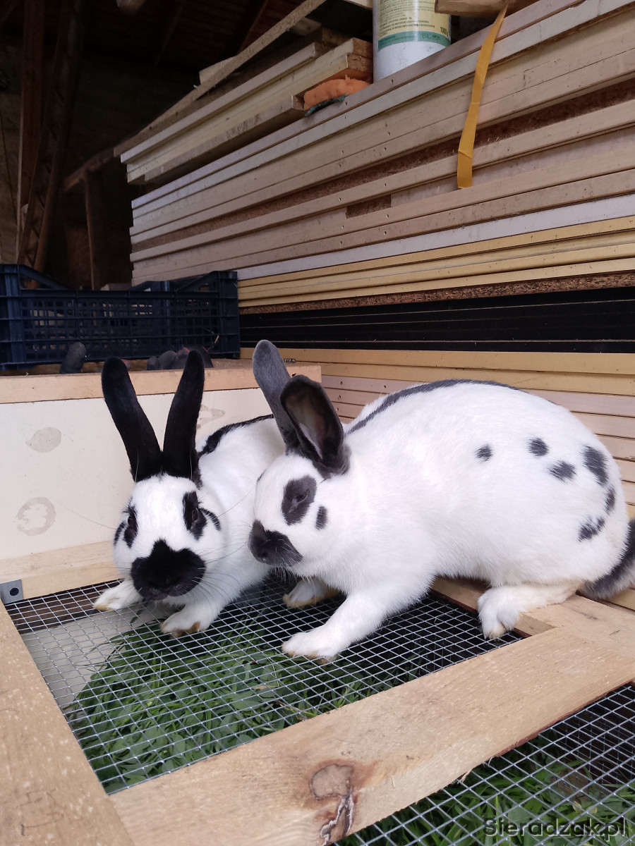 Mam do sprzedania parę Czeskich Srokaczy, urodzonych 1 kwietnia 2025r. Samiec czarny waga 3.3kg, samica niebieska 3.7kg, króliki dobrej budowy i wybarwienia. Króliki są rasy średniej waga od 3.3-4.2kg bardzo dobra wydajność rzeźna. Z 3.5kg żywego zostaje 2.5kg czystego mięsa. Króliki odrobaczone, niespokrewnione.