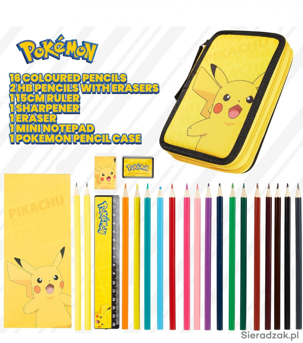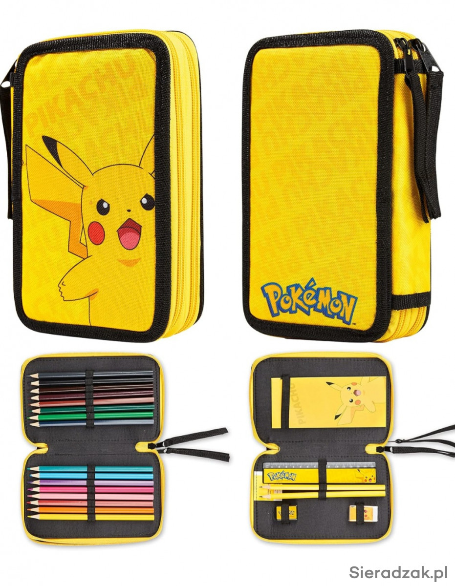 PIÓRNIK SZKOLNY POKEMON PIKACHU DWUKOMOROWY Z PRZYBORAMI SZKOLNYMI