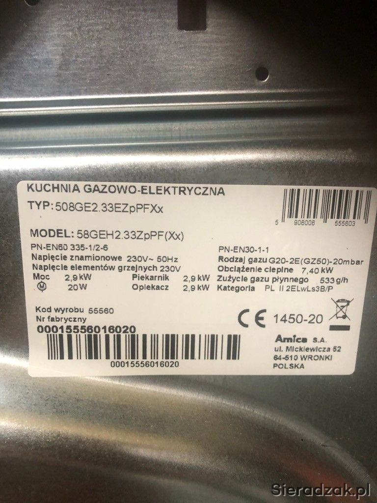 Sprzedam używaną przez 2 lata kuchnię gazowo- elektryczną Amica 58GEH2.33ZpPF(Xx).