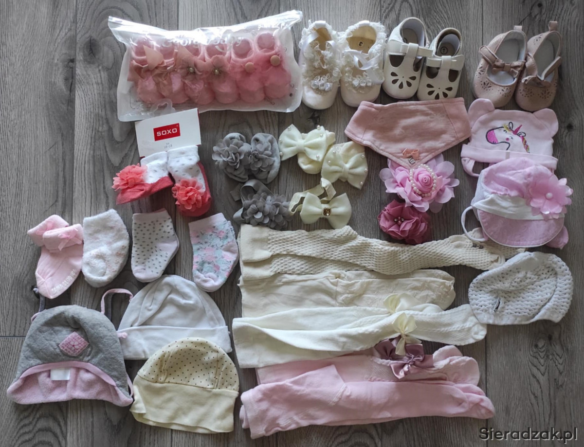 Bardzo duży zestaw ubranek dla dziewczynki w rozmiarze 62. Ubranka są w stanie idealnym. W skład zestawu wchodzą: