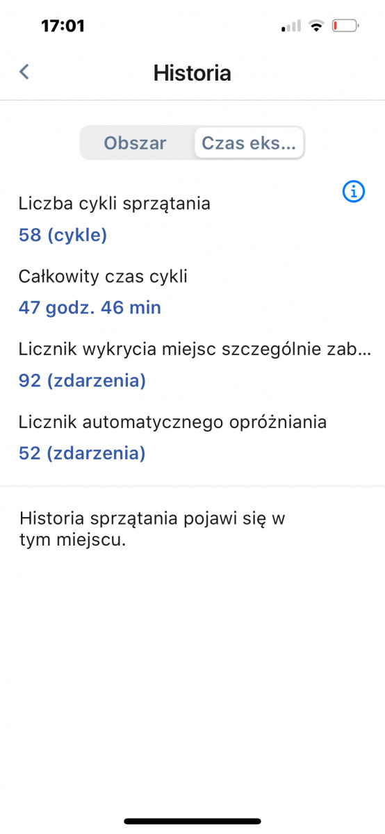 Do sprzedania 2-letni robot sprzątający w idealnym stanie i w pełni sprawny. Był używany sporadycznie. Wykonał jedynie 58 cykli sprzątania przez 48 godzin (historia na zdjęciu)W tym czasie dokonał 52 opróżnienia do stacji czyszczącej Clean Base. To jest bardzo praktyczna funkcja, bo robot po zapełnieniu sam wjeżdża na stację i opróżnia pojemnik. Potem dalej kontynuuje sprzatanie.