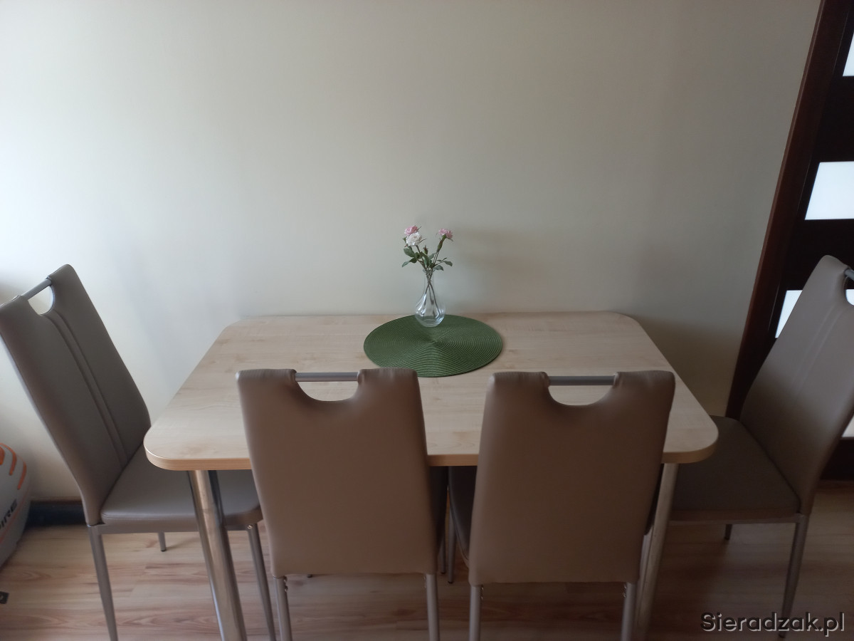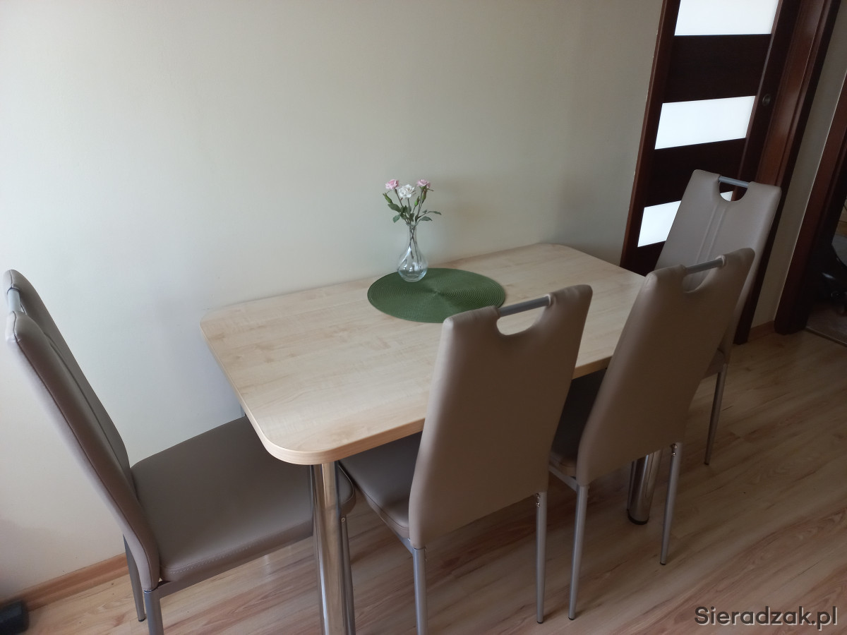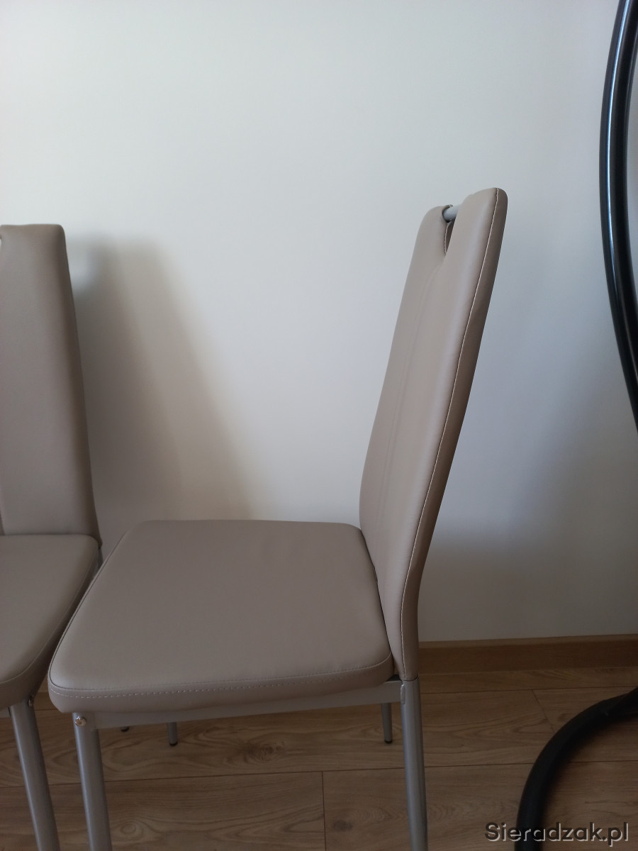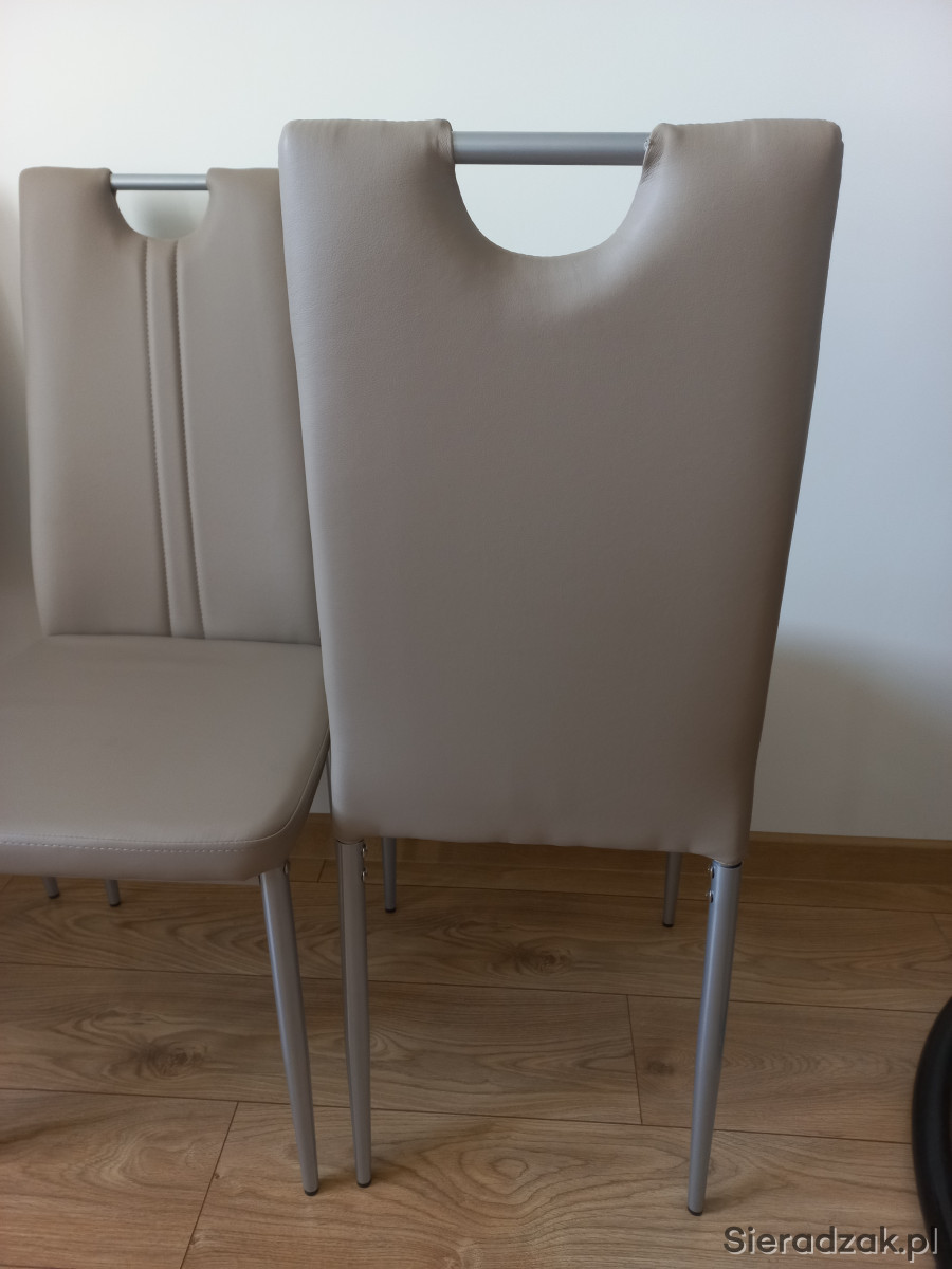 Nowe, nigdy nie używane 4 krzesła z praktyczniej ekoskóry w kolorze latte na metalowych nogach.