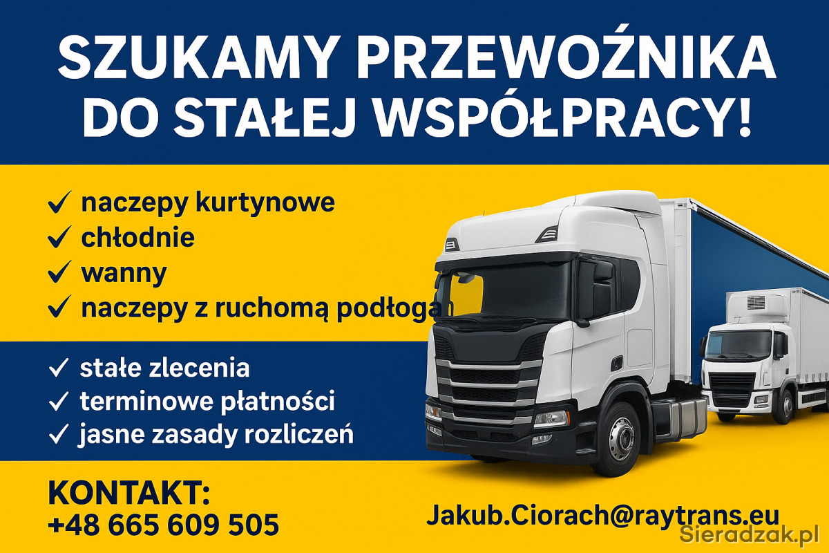 Firma spedycyjna o ugruntowanej pozycji na rynku przyjmie do prowadzenia naczepy: