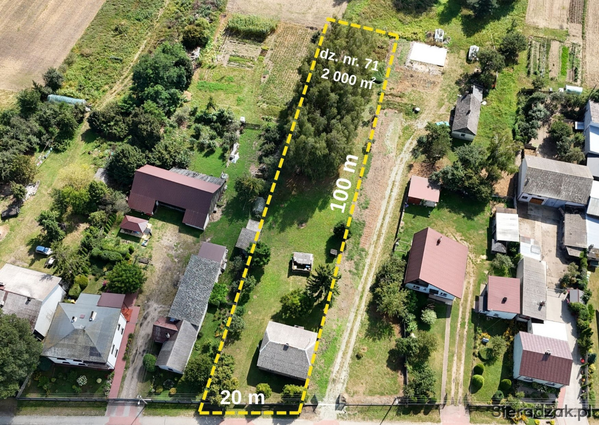 Działka o pow. 20 a, ogrodzona częściowo płotem betonowym, zadbana, z nasadzeniami drzew owocowych i krzewów. Działka w tylnej części zadrzewiona laskiem brzóz , który tworzy wyjątkowy klimat i idealne miejsce do odpoczynku w cieniu.