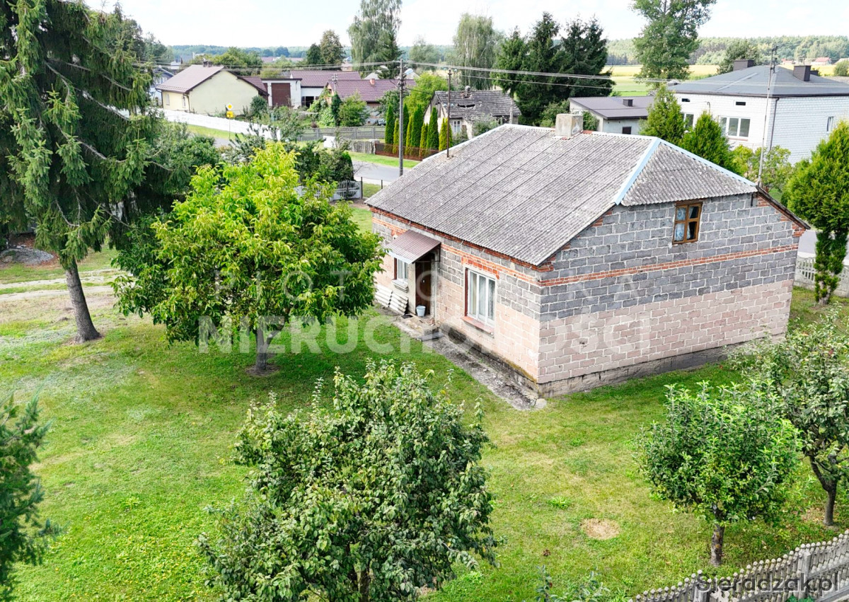 Dom mieszkalny parterowy z lat 60-tych wybudowany z bloczka żużlo-betonowego, kryty eternitem.