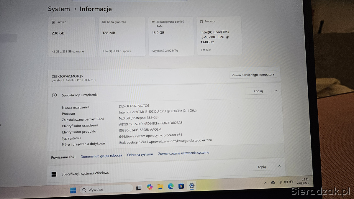 Na sprzedaż laptop, Toshiba Dynabook Satellite Pro, jest to świeży oraz szybki sprzęt ponieważ posiada procesor i5-10 generacji, 16GB Ram DDR4 oraz 256GB dysk SSD M2 Nvme.
