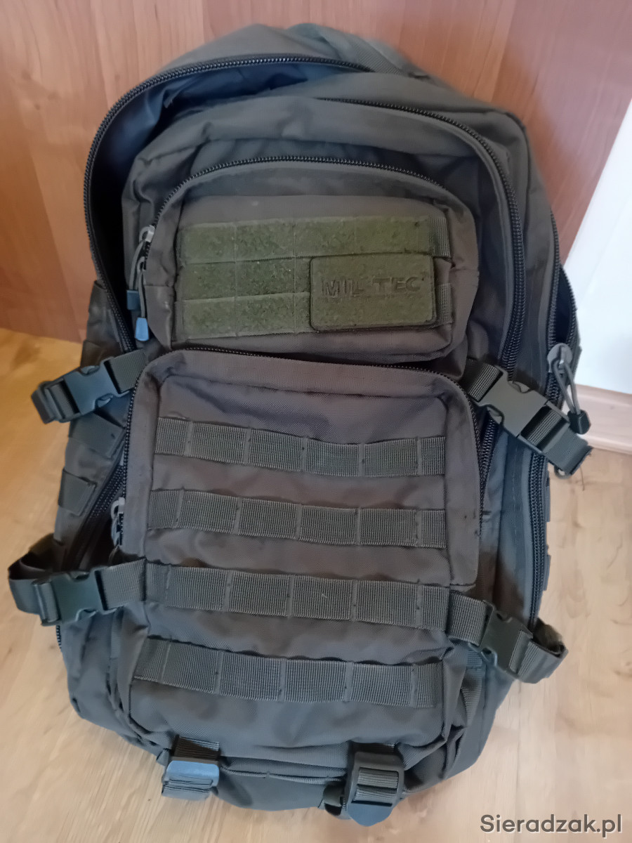 Plecak wojskowy mało używany. Posiada dwie mniejsze i dwie większe kieszenie. W środku w jednej z kieszeni siatka lekko się oderwała - można spokojnie zaszyć.