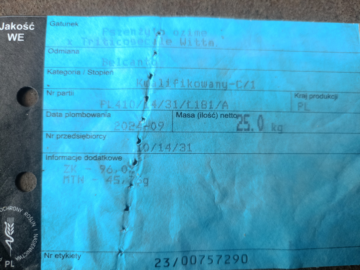 Witam mam do sprzedania pszenżyto ozime odmiana Belcanto.