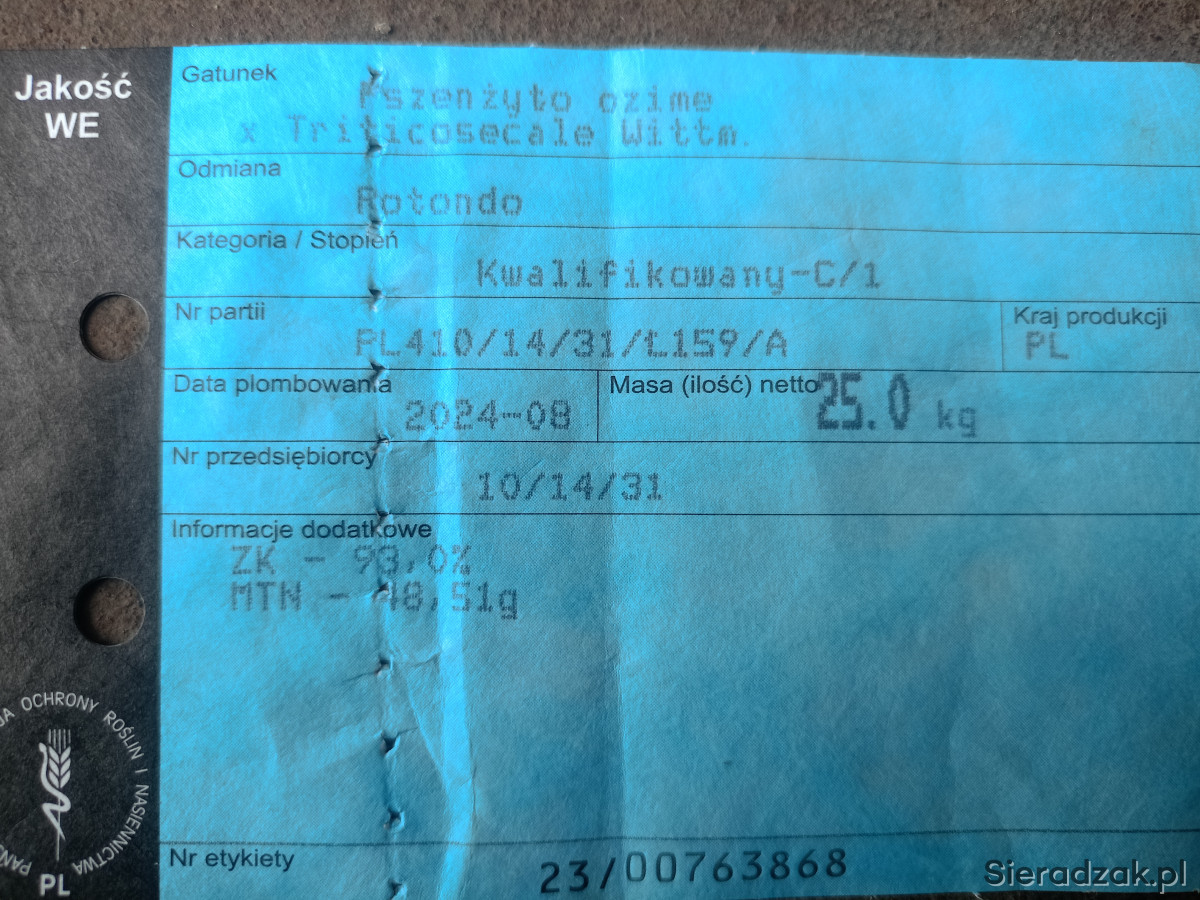 Witam mam do sprzedania pszenżyto ozime odmiana Rotondo.