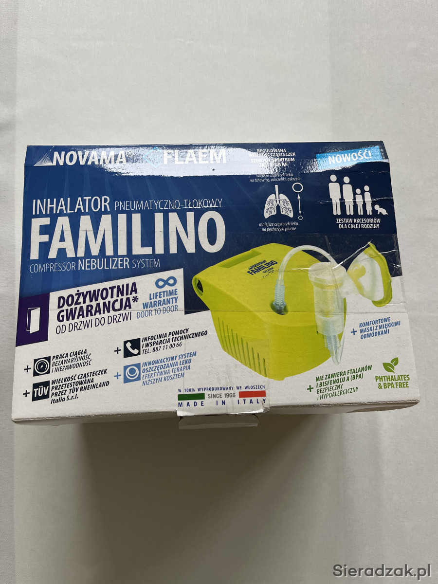 Praktycznie nowy inhalator Familiano marki Novama Flaem.Cieszy się bardzo pozytywnymi opiniami. Sprzedaję jako nietrafiony prezent. Możliwość odbioru osobistego lub wysyłki za pobraniem.