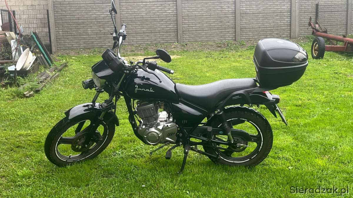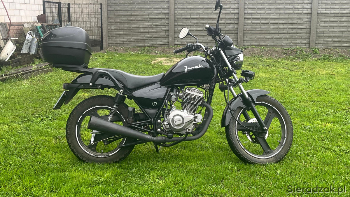 Sprzedam motocykl JUNAK 121 o pojemności 125ccm . Motocykl jest w bardzo dobrym stanie technicznym i wizualnym. Jest doinwestowany, posiada dodatkowe oświetlenie, kufer renomowanej firmy. Serwisowany na bieżąco, opłacony do przyszłego roku. Przebieg to 9767km