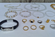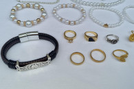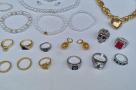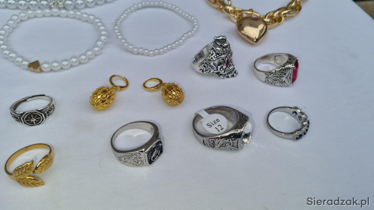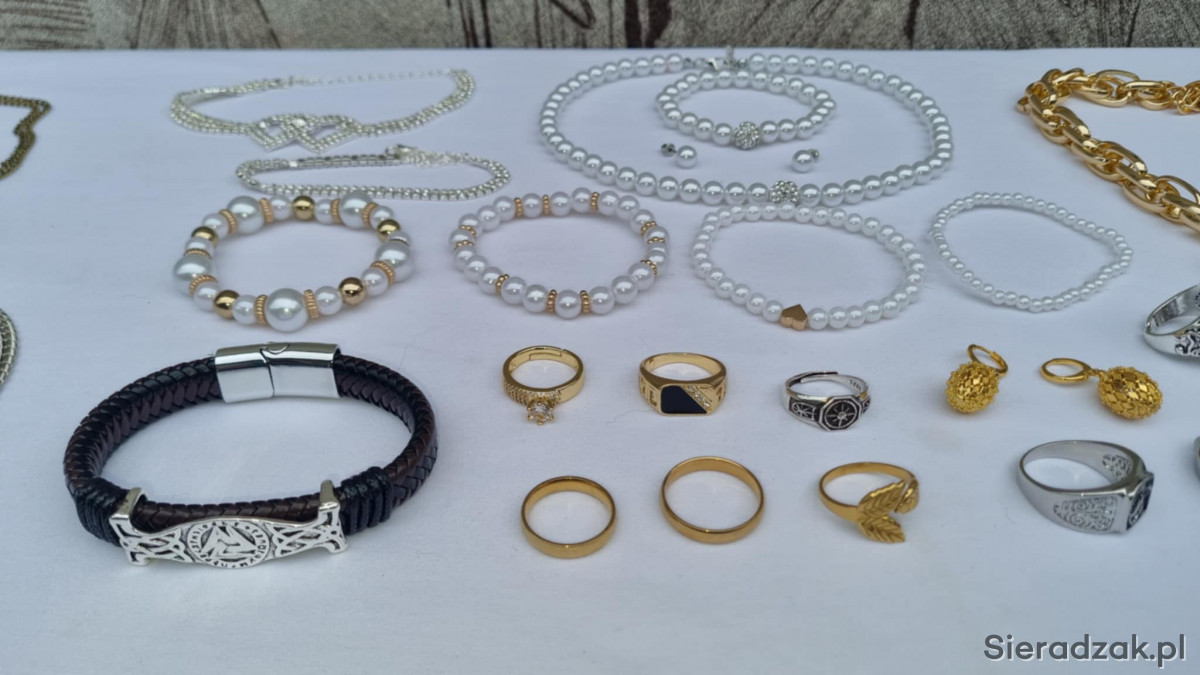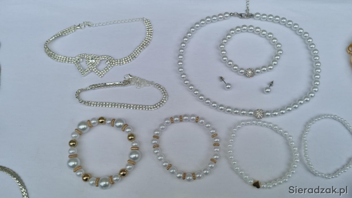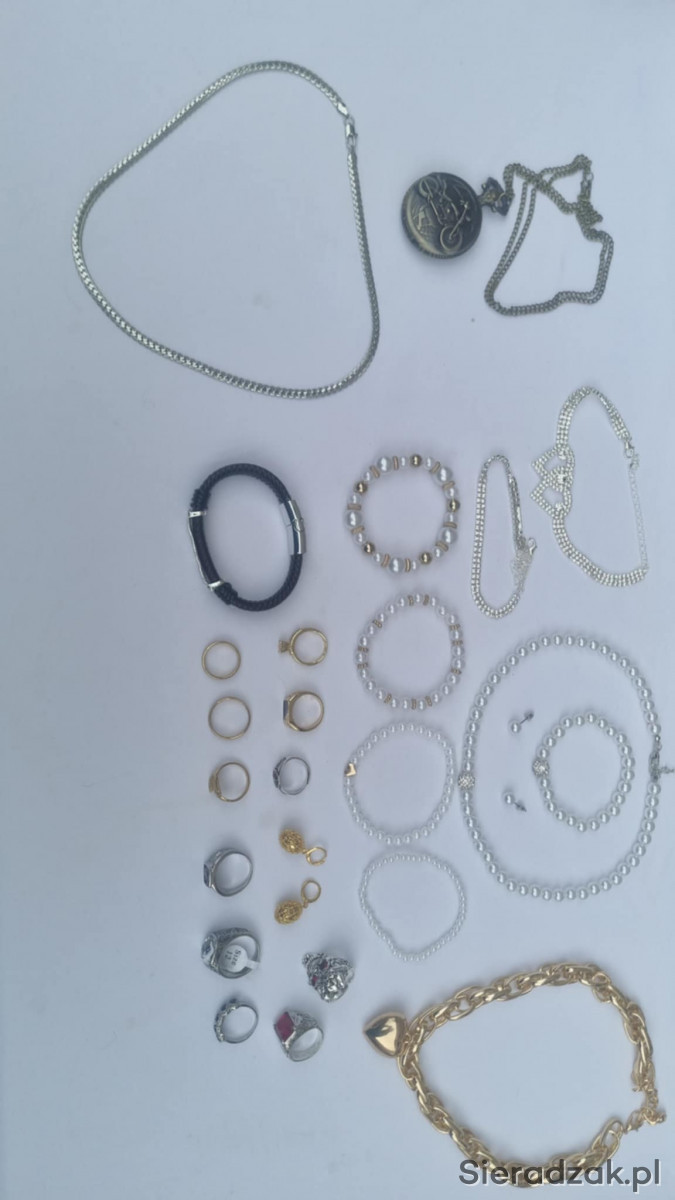 Biżuteria perły łańcuszki bransoletki pierścionki kolczyki zegarek.