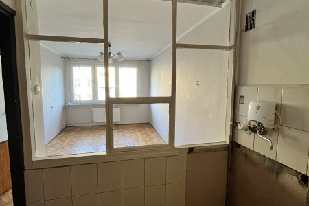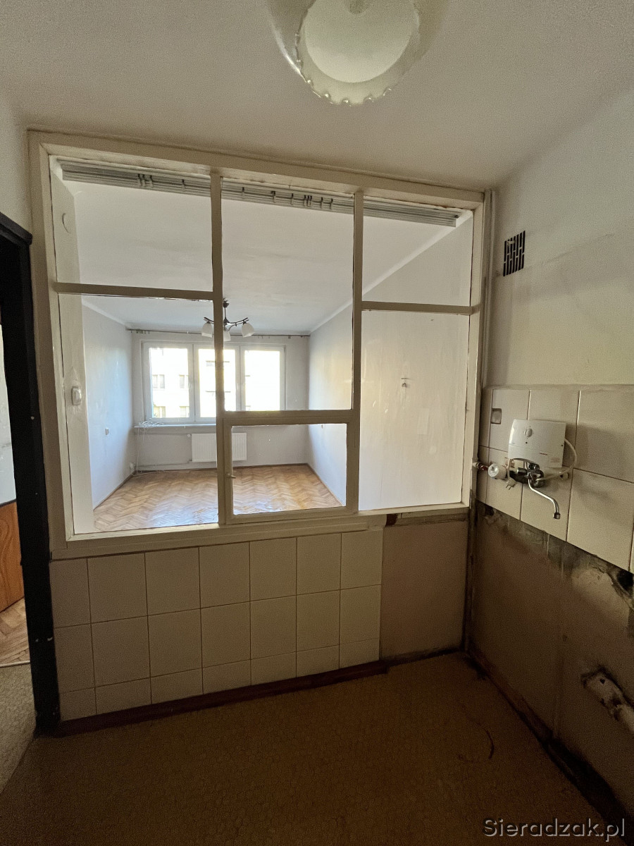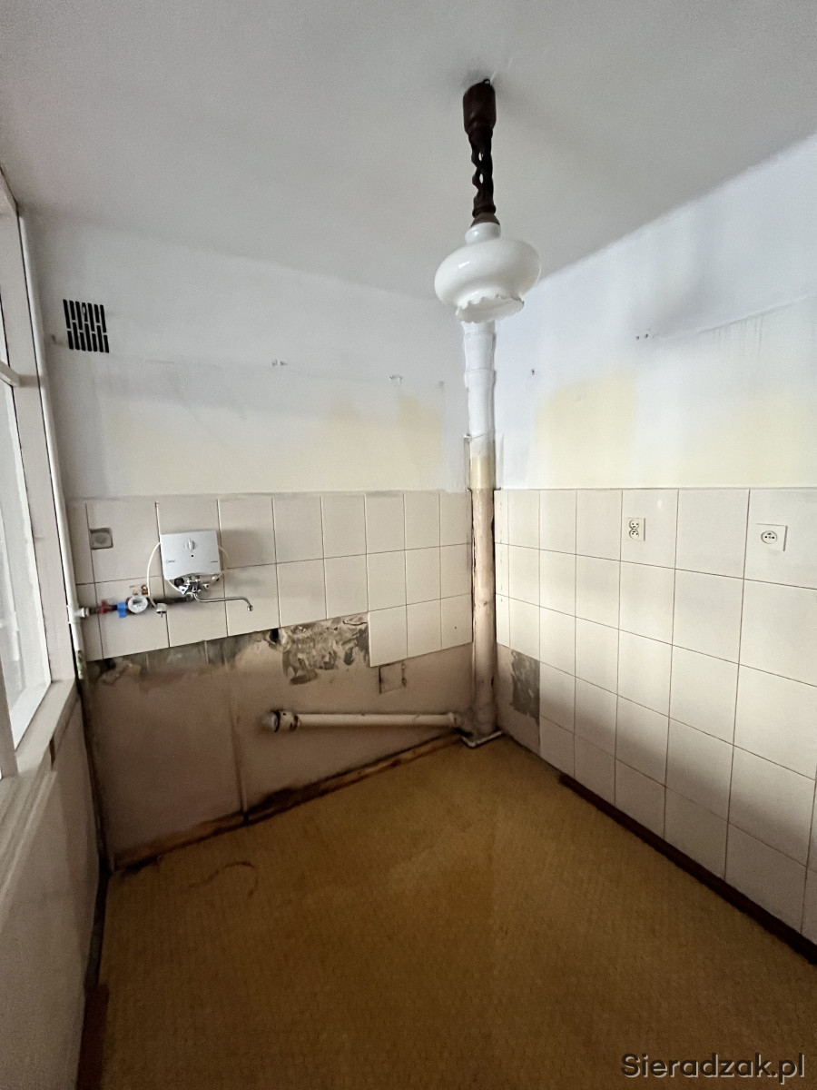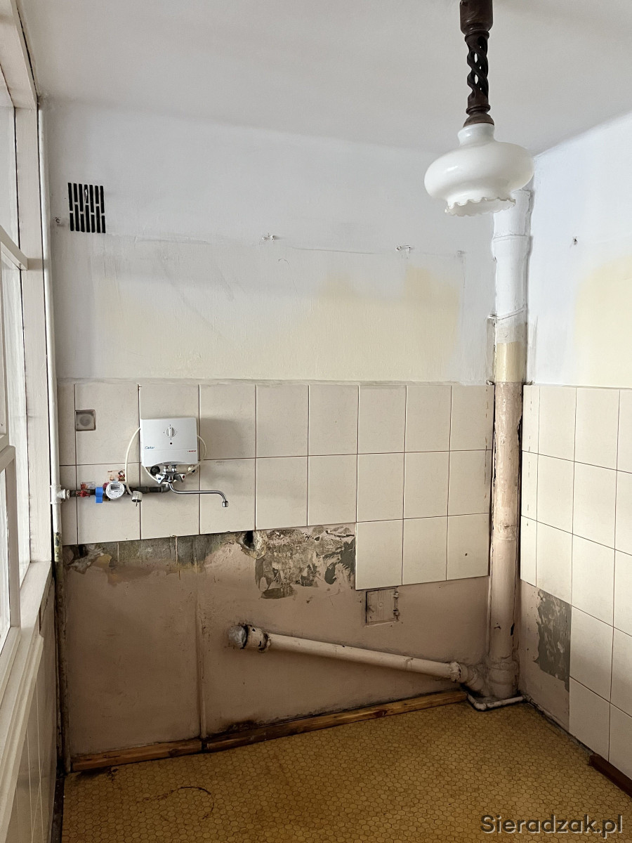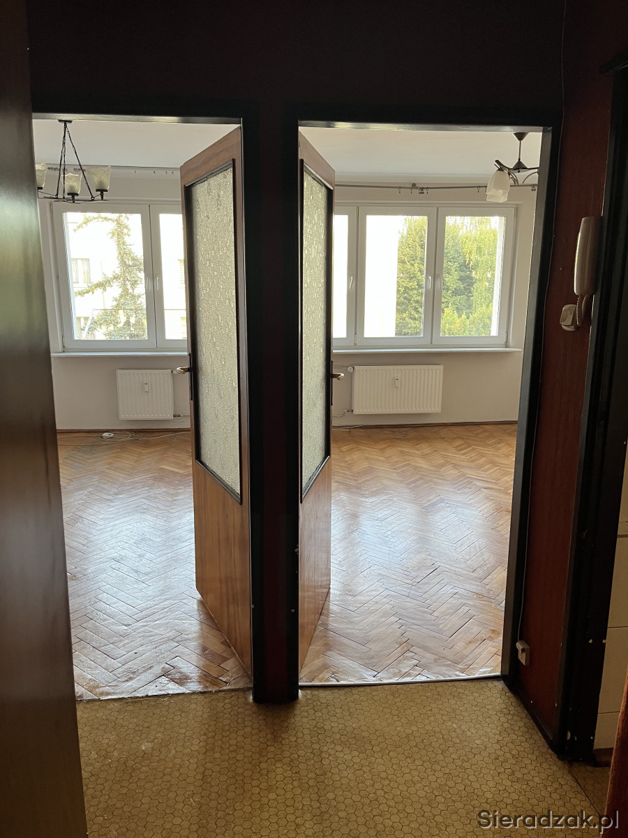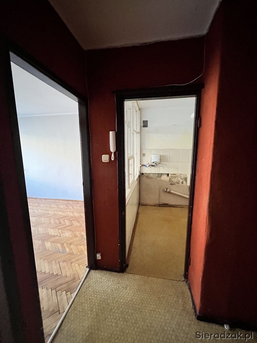 Mieszkanie do remontu. Na podłogach parkiet, w kuchni i przedpokoju linoleum.
