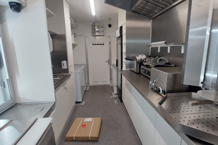 - pełne wyposażenie gastronomiczne ( 2 piece, grill, frytownice, podgrzewacz do mięsa , lada chłodnicza, witryna chłodnicza, 2 duże zamrażarki, płyta grillowa ) ;