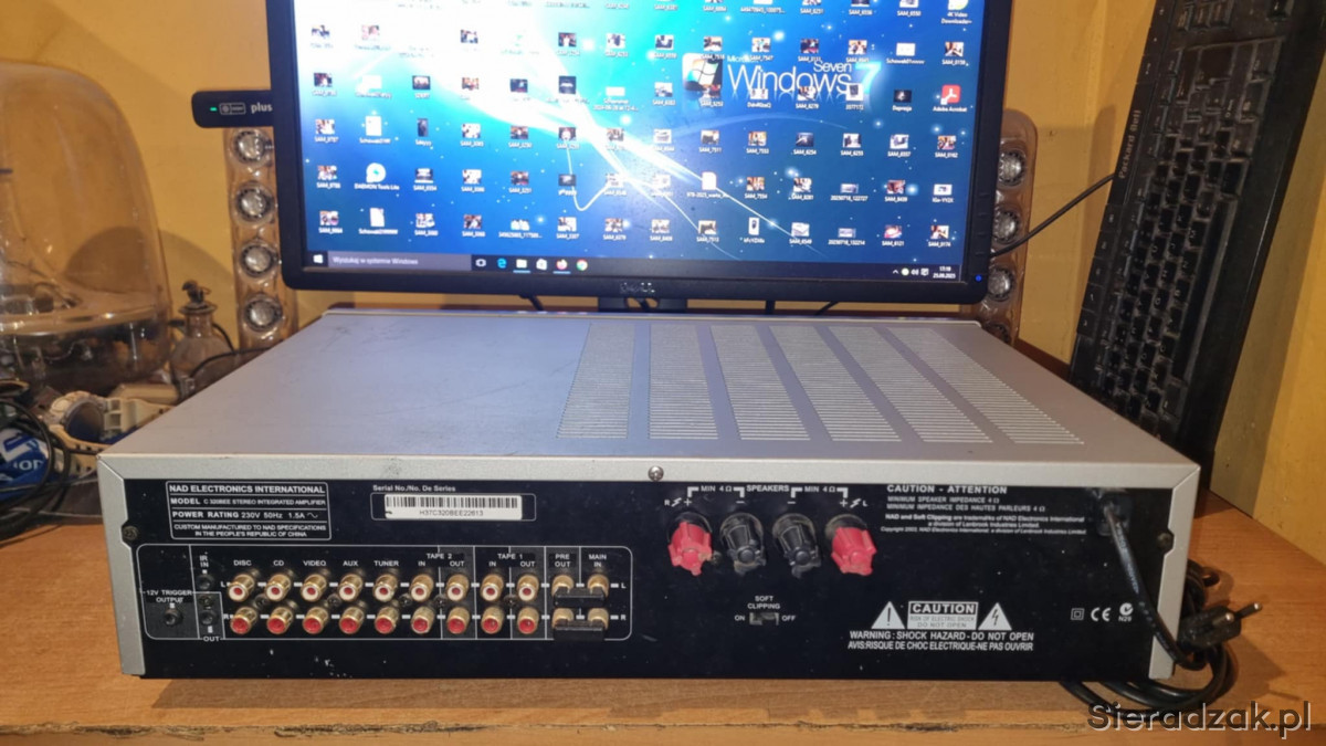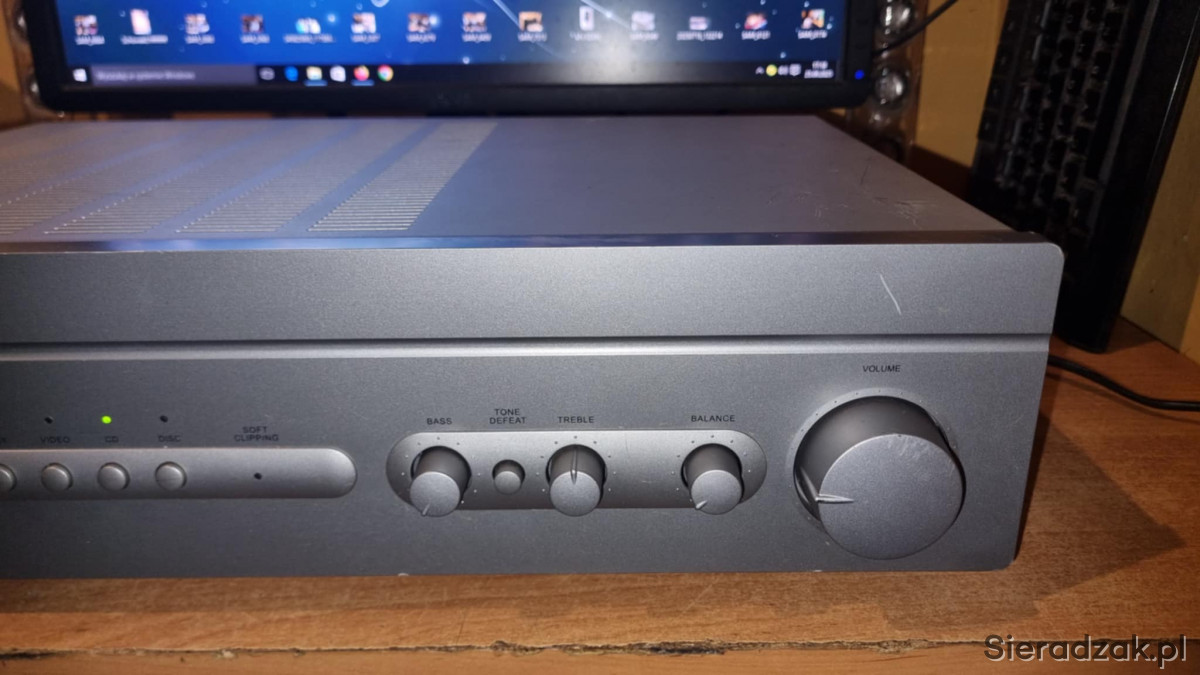 Wzmacniacz sprawny w stanie jak na foto. Nosi ślady użytkowania w postaci rys i zadrapań. Brak pilota w komplecie. Można używać jako końcówki mocy lub przedwzmacniacza. Polecam.