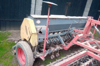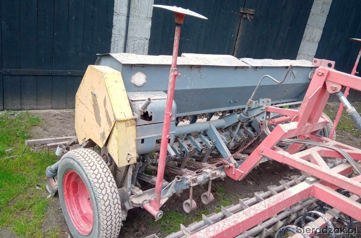 Sprzedam siewnik 3m, 25 redlic siewnych ze sprężynowym dociskiem, znaczniki przedłużone i zmieniane hydraulicznie, ścieżki technologiczne zrobione pod 12m opryskiwacz załączane elektrycznie, mieszadło przerobione na ruch obrotowy, podest na zagarniaczach i ławeczka na skrzyni zasypowej do położenia worka, zdrowe opony, posiadam rynienki do próby kręconej. Siewnik posiadamy od nowości i ciągle garażowany. Możliwość kupna bez hydrauliki i elektryki.