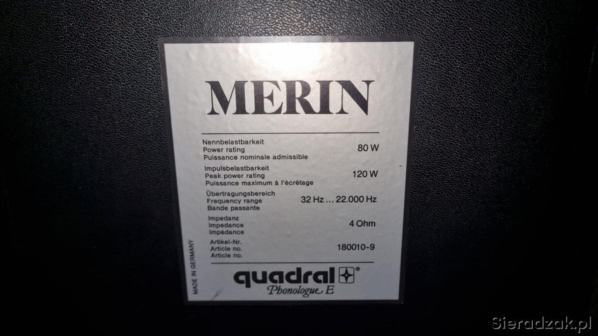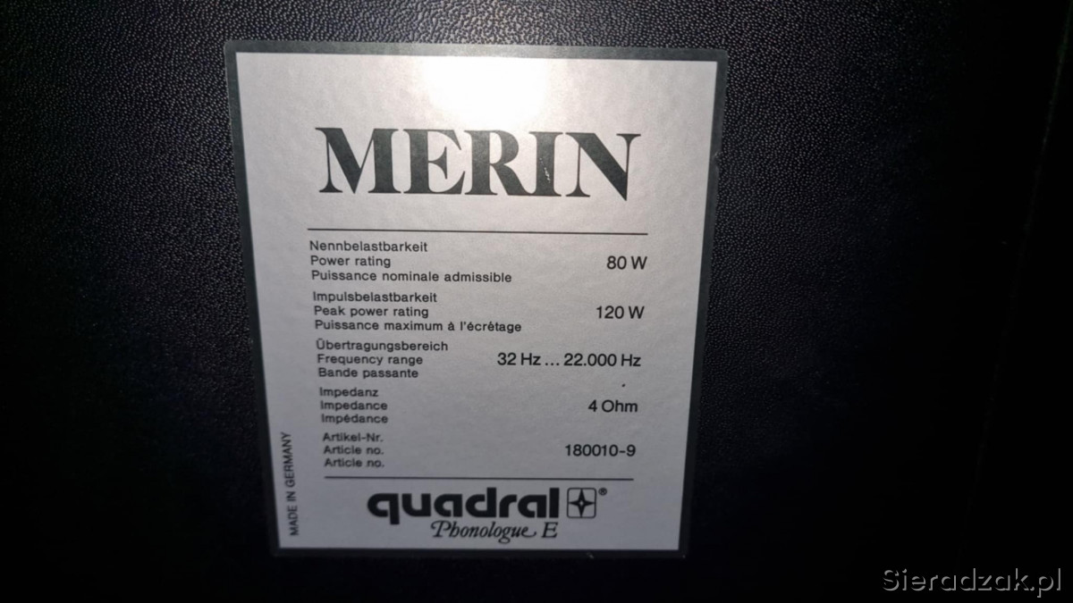 Kolumny Quadral Merin 2x120W 80W RMS 4 ohm Made in Germany.