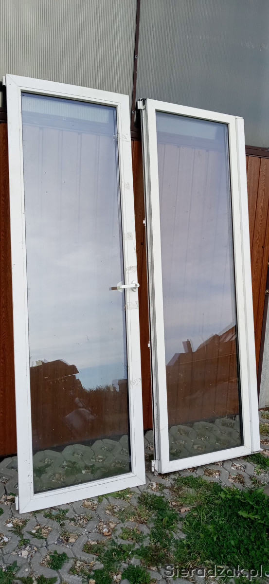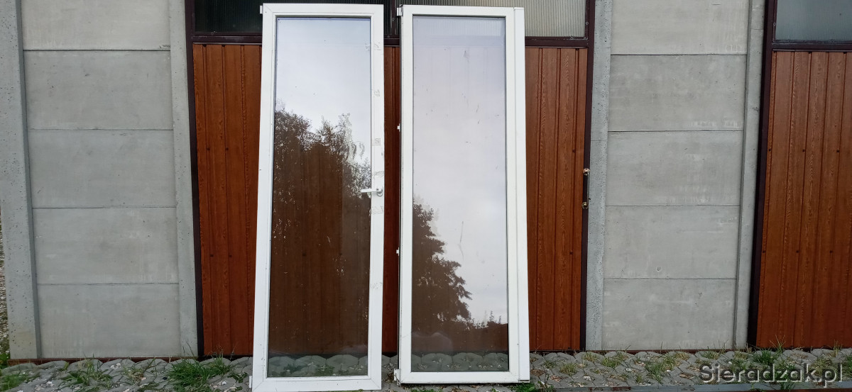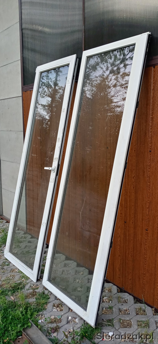 Dwa okna balkonowe tarasowe idealne do domu garażu altany szklarni wymiary 230x75cm. Cena za sztukę.