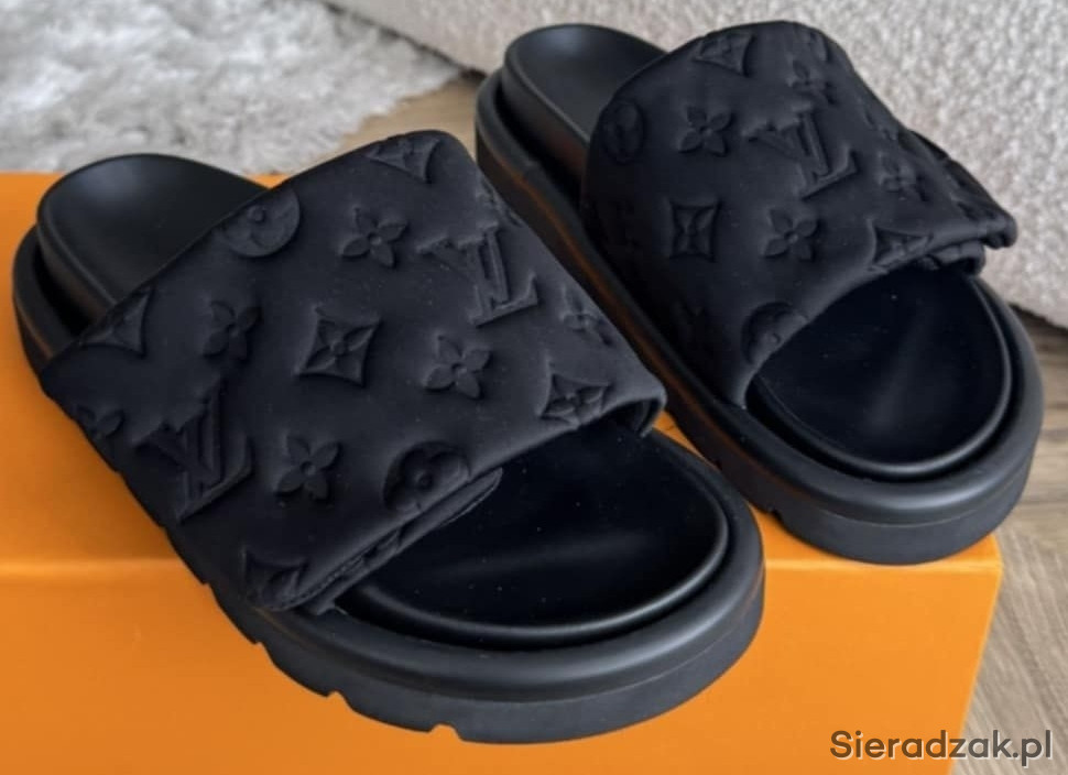 Sprzedam nowe czarne klapki damskie LV rozm 40 -długość wkładki 26 cm. Otrzymałam je w prezencie, jednakże są za małe . Możliwość wysyłki . Więcej informacji udzielę telefonicznie 798599904