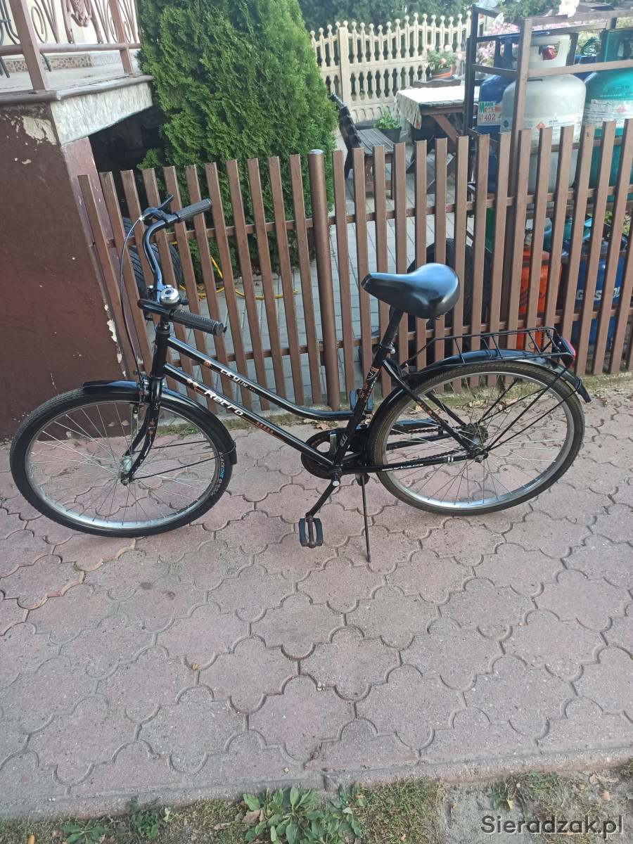 Sprzedam Rower damski Retro city line bez przerzutek w bardzo dobrym stanie technicznym i wizualnym jest prawie jak Nowy niewiele był użytkowany bardzo mało koła ma Rozmiar 26 cali hamulce ma w pedałach i w rączce wszystko jest sprawne Rower damski bardzo leciutko się pedałuje Rower damski jest aluminiowy i jest założona nowa opona na przodzie