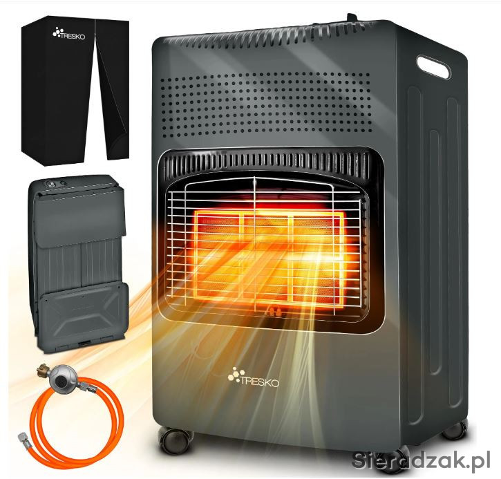Promiennik gazowy TRESKO 4200 W wraz z regulatorem ciśnienia gazu, wężem gazowym i pokrywą | Kuchenka gazowa z 3 poziomami ogrzewania | Promiennik gazowy na podczerwień do butli gazowych na butan lub propan o masie do 15 kg