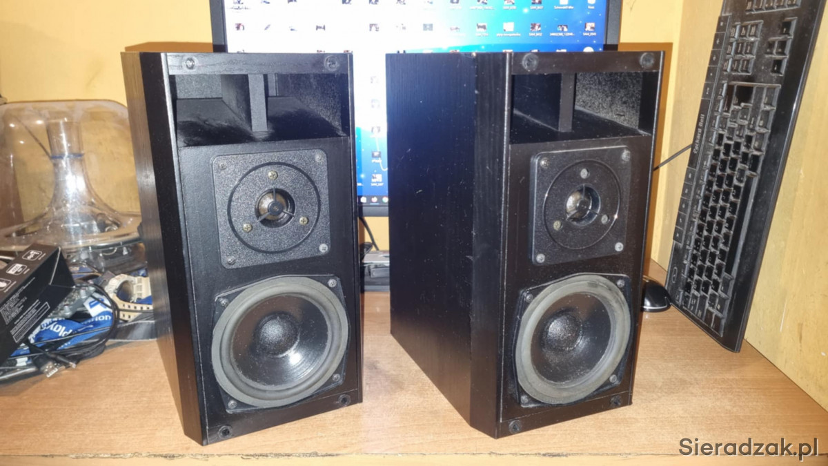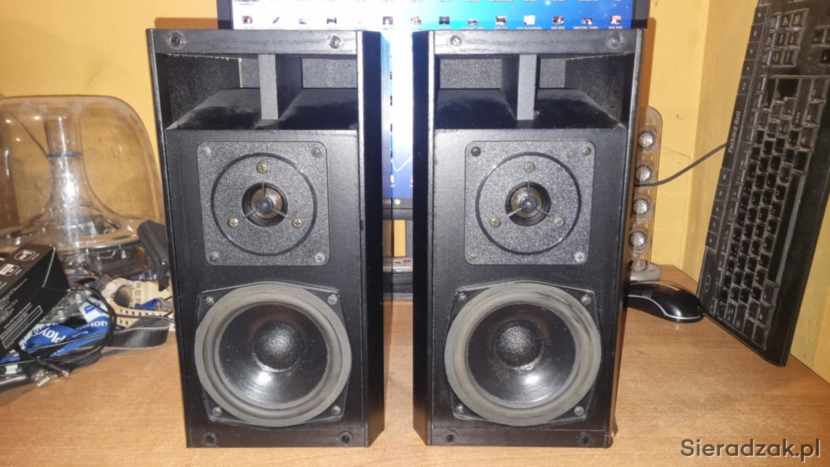 Kolumny sprawne w stanie jak na foto. Grają wyśmienicie. Ciężkie masywne głębokie drewniane obudowy. Bardzo rzadko spotykane na rynku wtórnym. Każdy kto ma trzyma dla siebie. Małe a potrafią oczarować. Polecam. Jedna kolumna dośc mocno uderzona w boki widać to na foto.