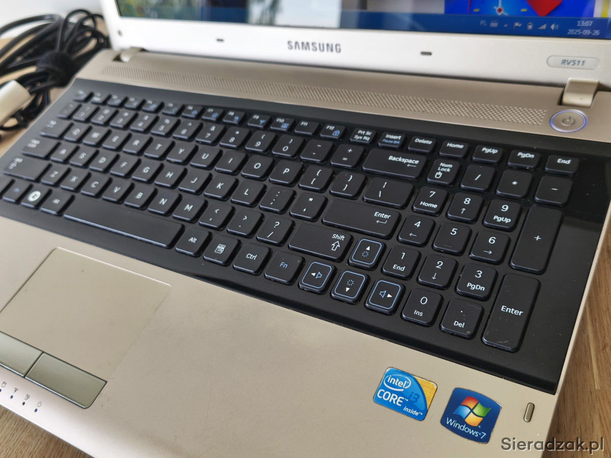 Sprzedam laptop Samsung RV511z LEDową matrycą 15,6". Komputer służył do przeglądania internetu. Jest w idealnym stanie technicznym oraz bardzo dobrym wizualnym. Kondycyjnie bez zastrzeżeń. Do laptopa jest zasilacz oraz bateria która trzyma ponad godzinę. Zainstalowany jest świeży Windows 7 64 bitowy oraz pakiet Office.