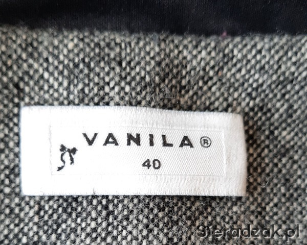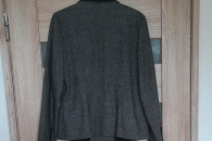 Do sprzedania w idealnym stanie wełniany ŻAKIET-MARYNARKA, melanż szaro-czarny, rozmiar M/40, lekko taliowany, zapinany na 2 guziki, na dobrej jakości podszewce, klapy w kolorze czarnym, z przodu dwie wypustki w kolorze czarnym imitujące kieszenie. Producent firma Vanila, produkt polski. Żakiet bardzo uniwersalny, styl klasyczny, pasuje do wielu stylizacji, bardzo wygodny i praktyczny.