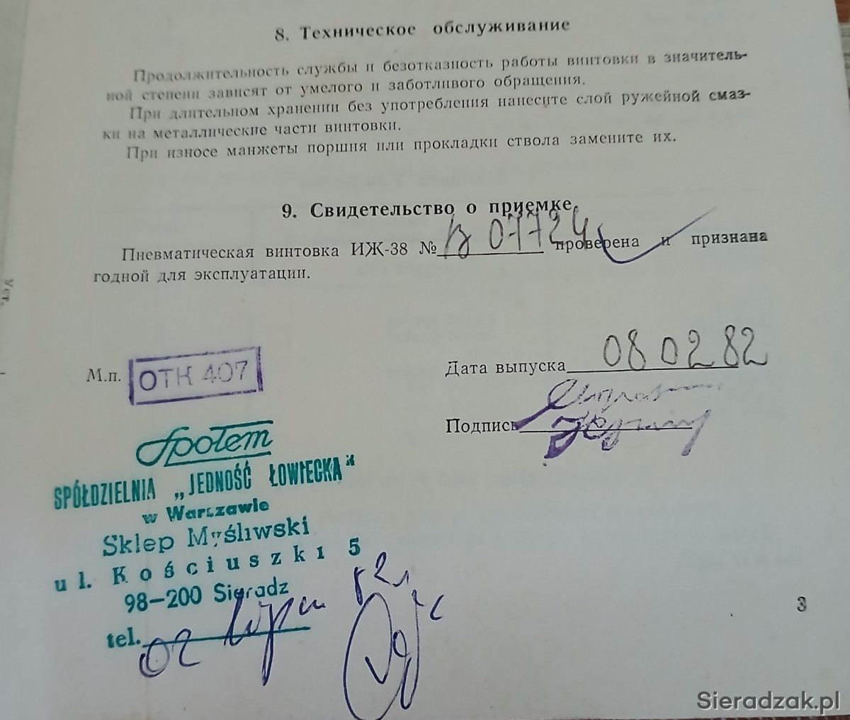 Model/nr seryjny/wiek: ИЖ 38 Vostok / Б 07724 / 1982