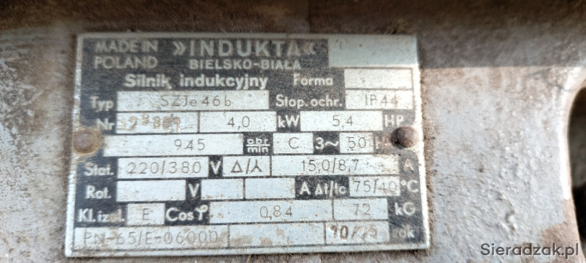Sprzedam łuparkę do drewna , silnik wolnoobrotowy 220/380 o mocy 5,44 KM . Więcej inf. tel. 501 448 506. Nie odpisuję na SMS.