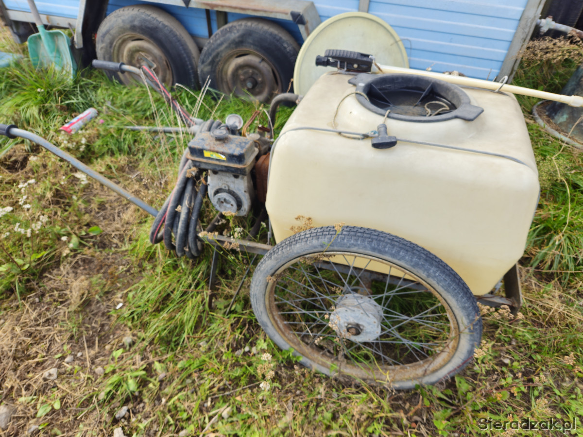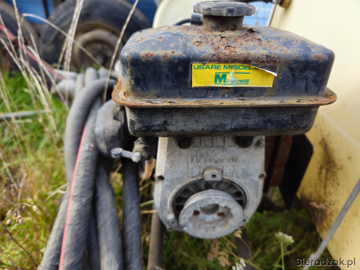 Mam do sprzedania niezawodny opryskiwacz taczkowy z włoskim silnikiem Minarelli i wieczną pompą Bertolini. Opryskiwacz od lat nieużywany wiec do wymiany są węże i pewnie dętki w kołach. Pali od pierwszego pociągnięcia.