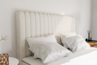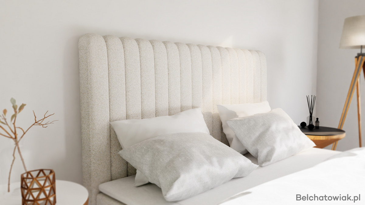 Łóżko kontynentalne SOMNUS wyróżnia się eleganckim zagłowiem, złożonym z osobno tapicerowanych, zaoblonych paneli połączonych ze sobą. To wyjątkowy detal, który harmonijnie komponuje się z różnymi aranżacjami wnętrz, dodając im klasy i charakteru.