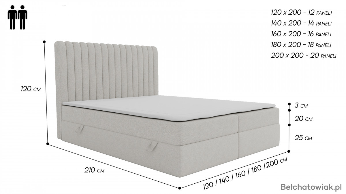 Szerokość: 120 / 140 / 160 / 180 / 200 cm