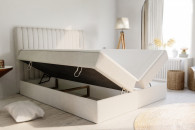 Model SOMNUS wyposażono w dwa pojemniki na pościel, otwierane z dwóch stron łóżka. To funkcjonalne rozwiązanie, które ułatwia utrzymanie porządku i estetyczne przechowywanie dodatkowych kołder, poduszek czy innych akcesoriów.
