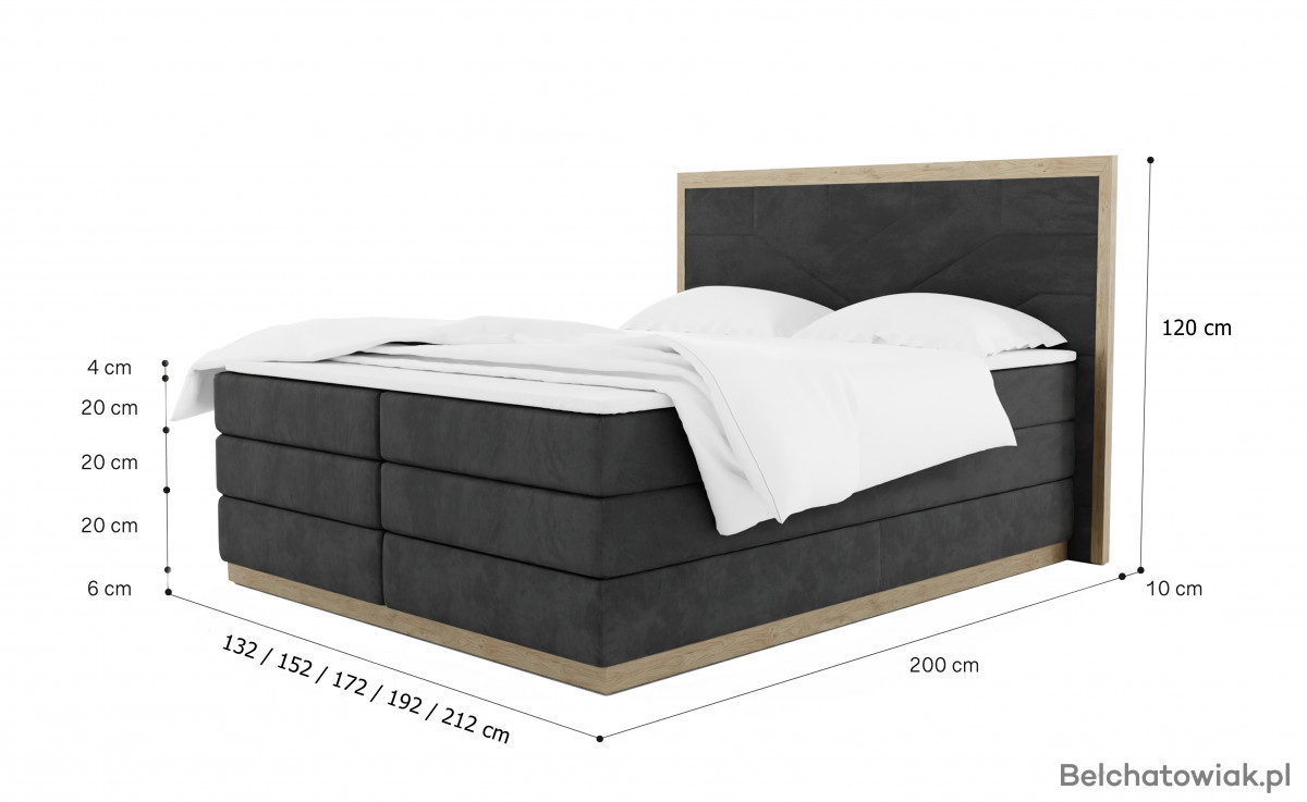 Górna warstwa to materac kieszeniowy, którego wysokość z górną krawędzią sięga aż 70 cm. Nadaje to łóżku luksusowego charakteru i gwarantuje wyjątkowy komfort użytkowania.
