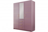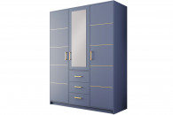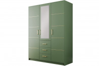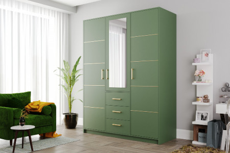 Szafa trzydrzwiowa z lustrem i złotą listwą – śliwka, butelkowa zieleń, zgaszony błękit