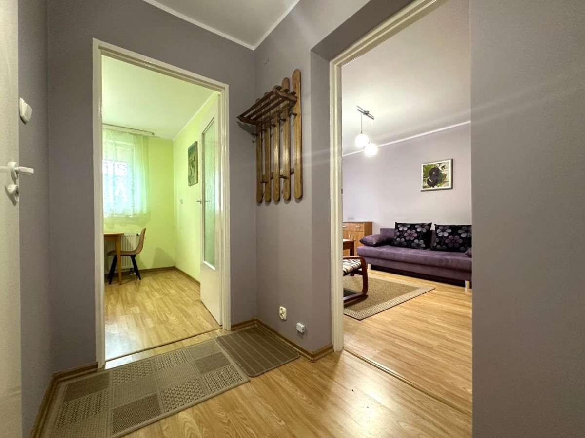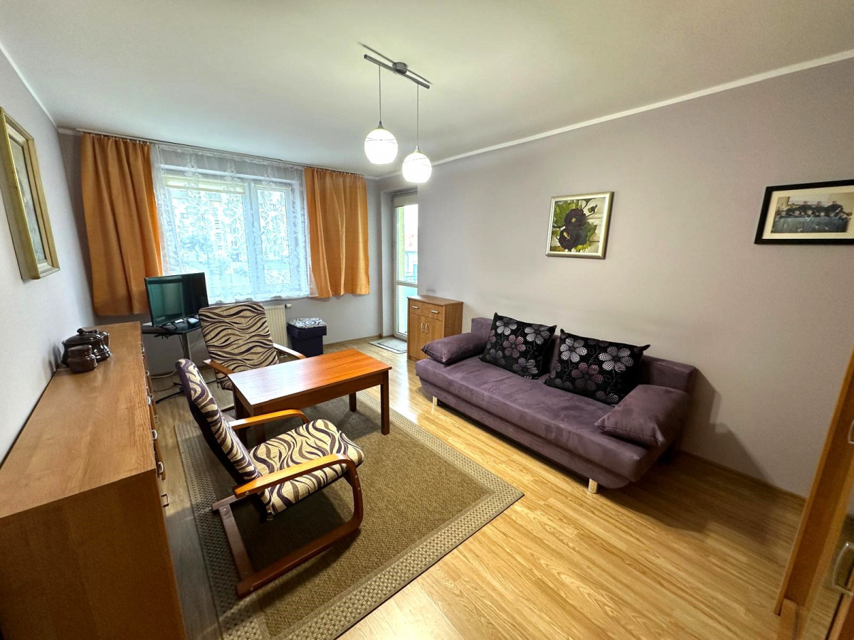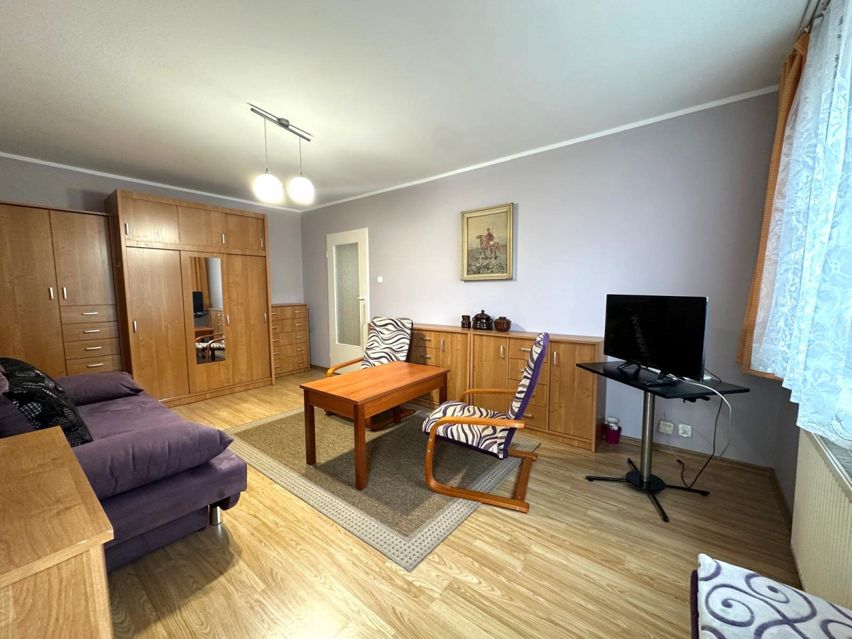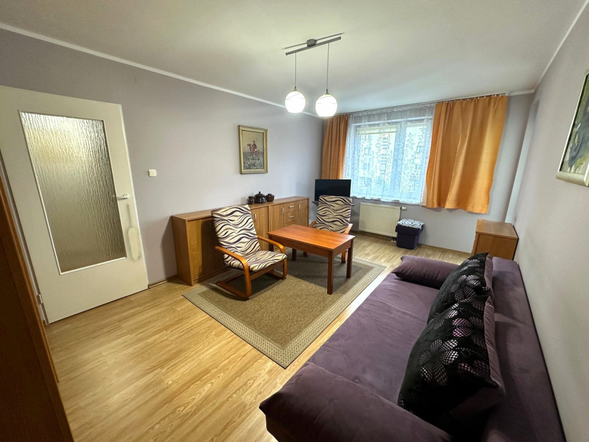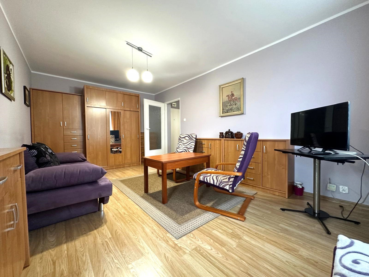 - umeblowanego, przestronnego pokoju dziennego z wyjściem na balkon z widokiem na dziedziniec;