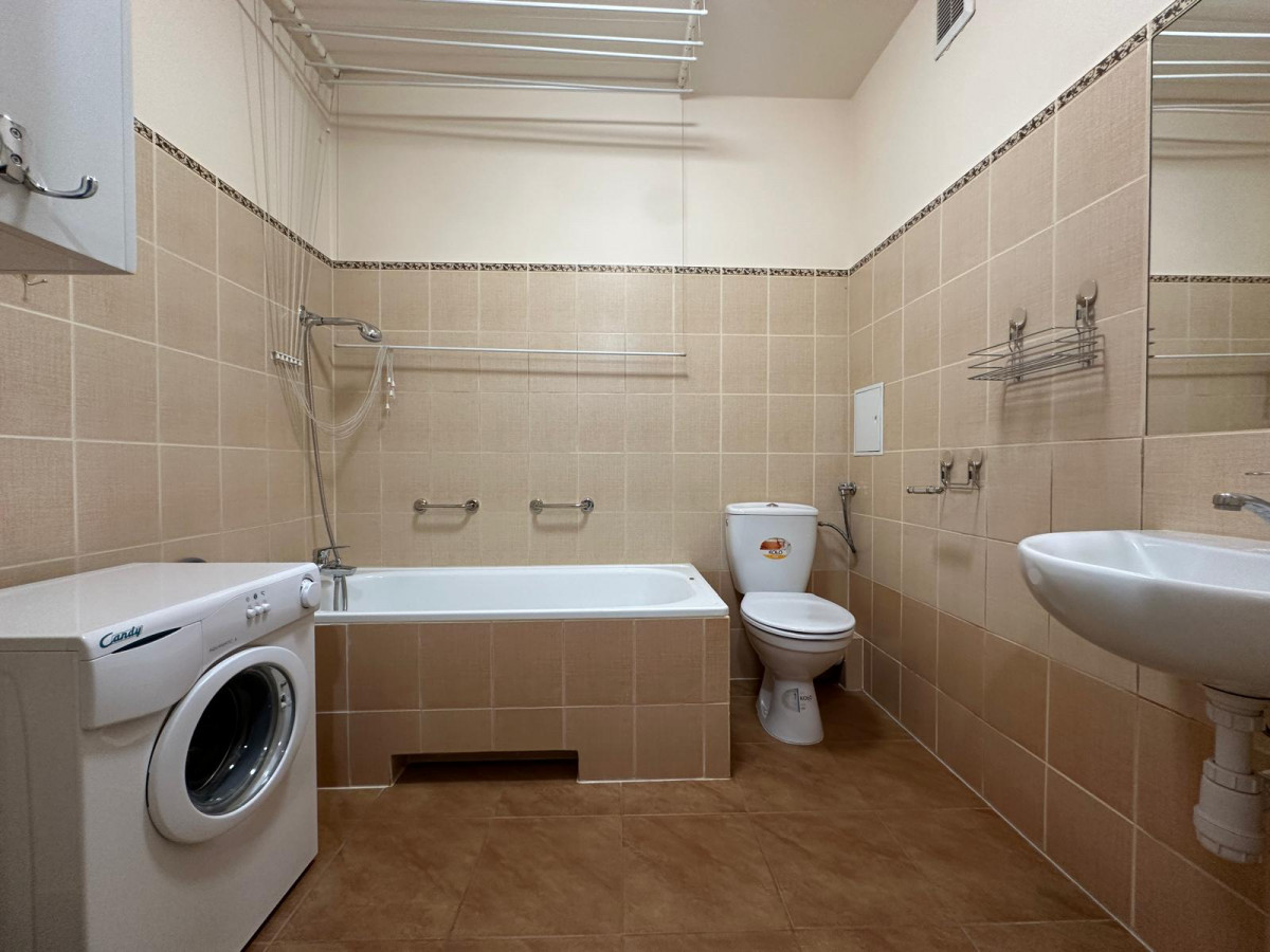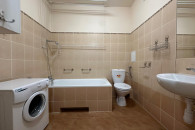 - łazienki z WC wyposażonej w wannę i małą pralkę;