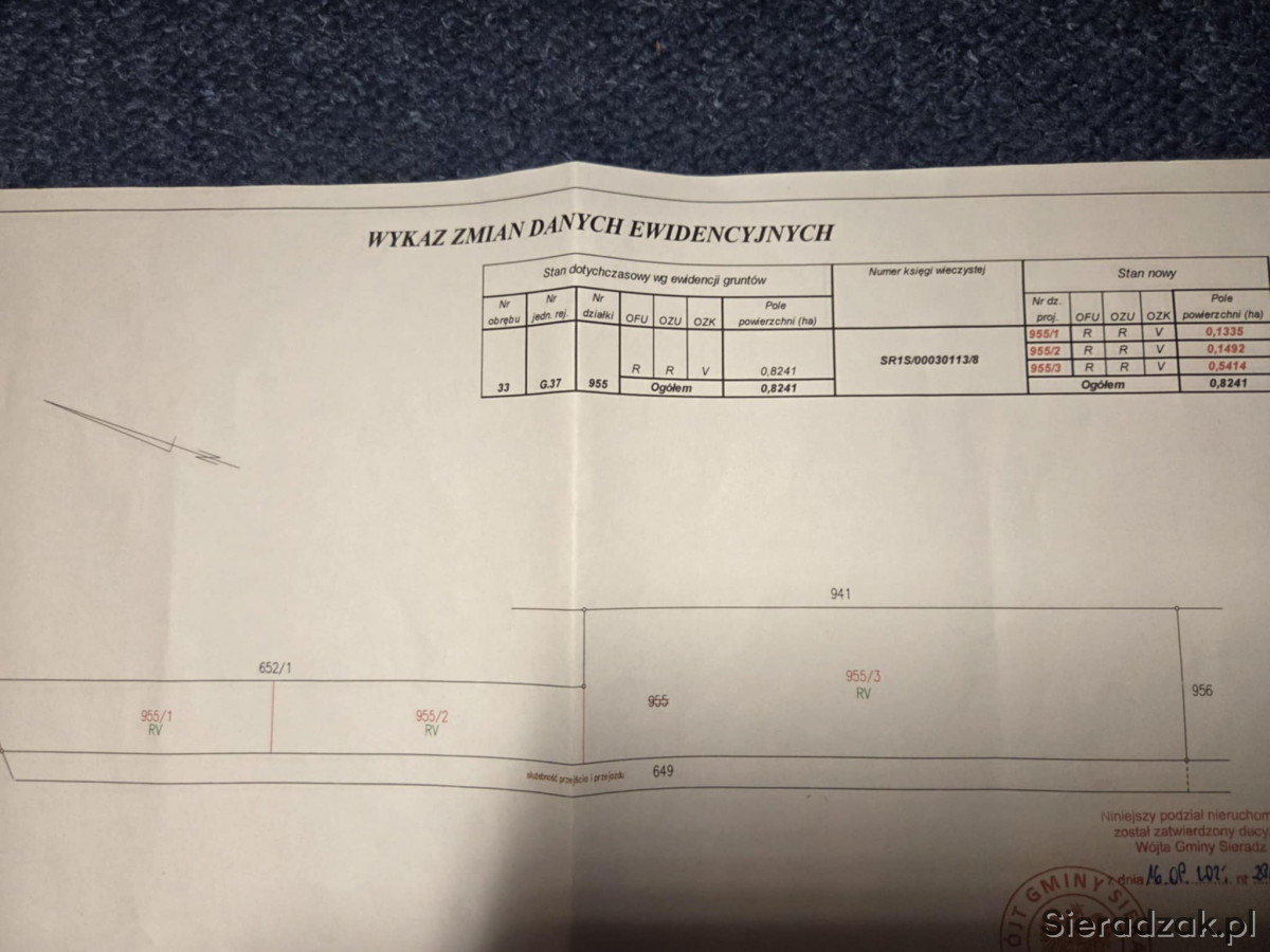 Działka numer 955/1 --> powierzcnia: 0,1335 ha --> Cena: 77.000 zł