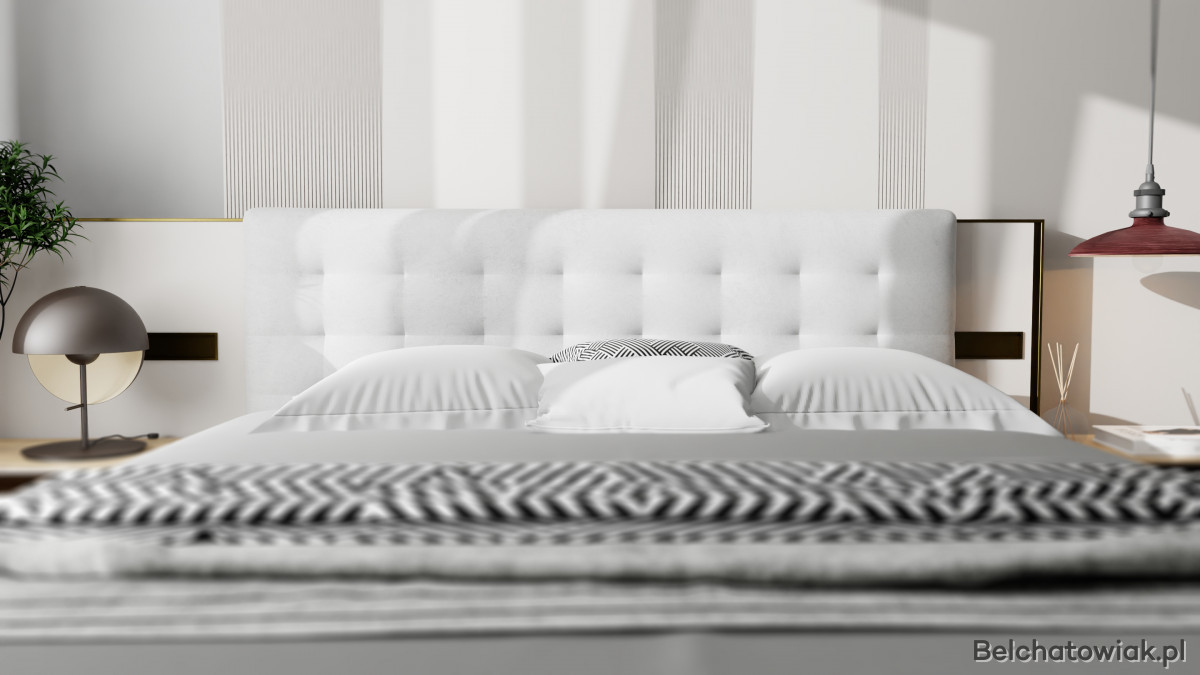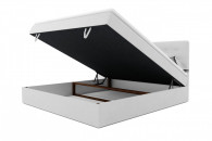 Dolna część łóżka skrywa pojemnik na pościel, idealny do przechowywania dodatkowych koców, poduszek i pościeli. Łatwy dostęp i wygodne otwieranie pojemnika ułatwiają utrzymanie porządku w sypialni.