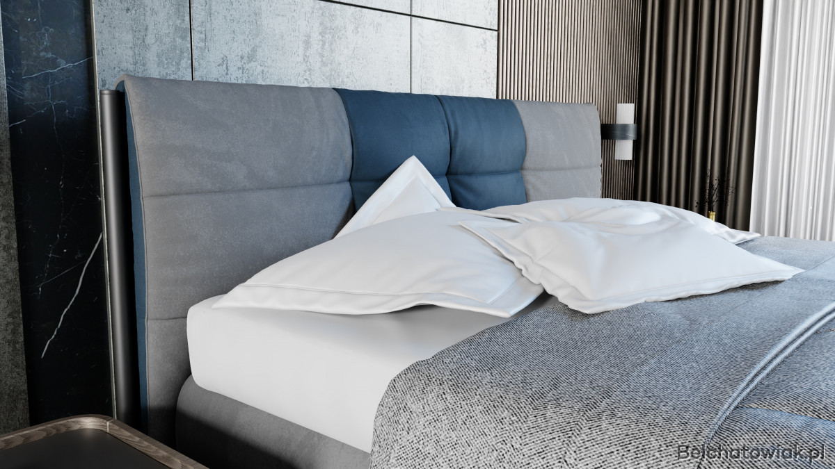Łóżko z tapicerowanym zagłówkiem – miękkie wezgłowie zawieszone na ramie zapewnia komfort podczas czytania i relaksu