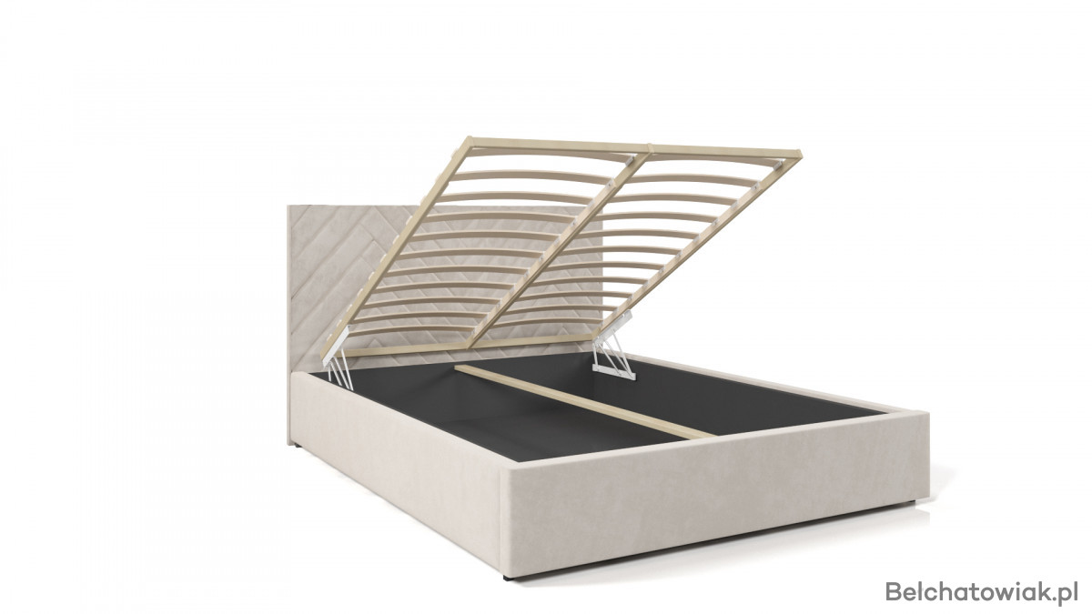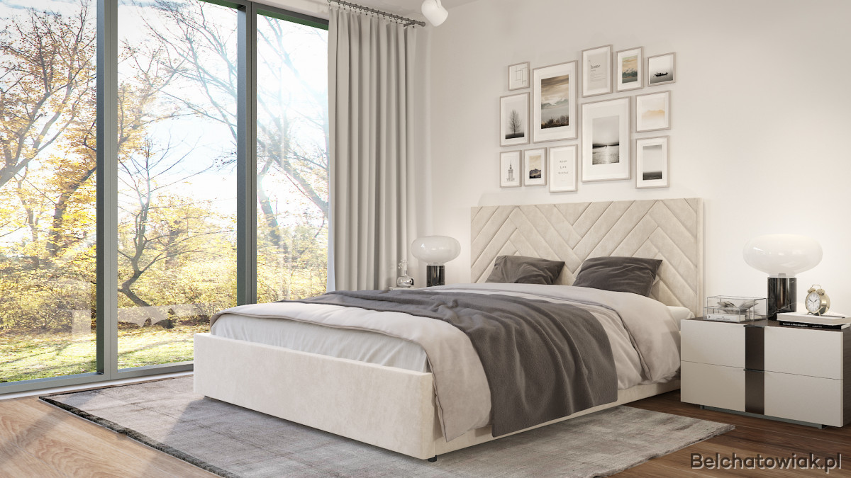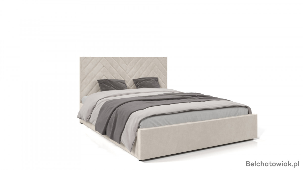 Łóżko BRAVO to model o wyjątkowym charakterze. Tapicerowane wezgłowie z ozdobnym wzorem jodełki przyciąga wzrok i nadaje wnętrzu niepowtarzalnego stylu.