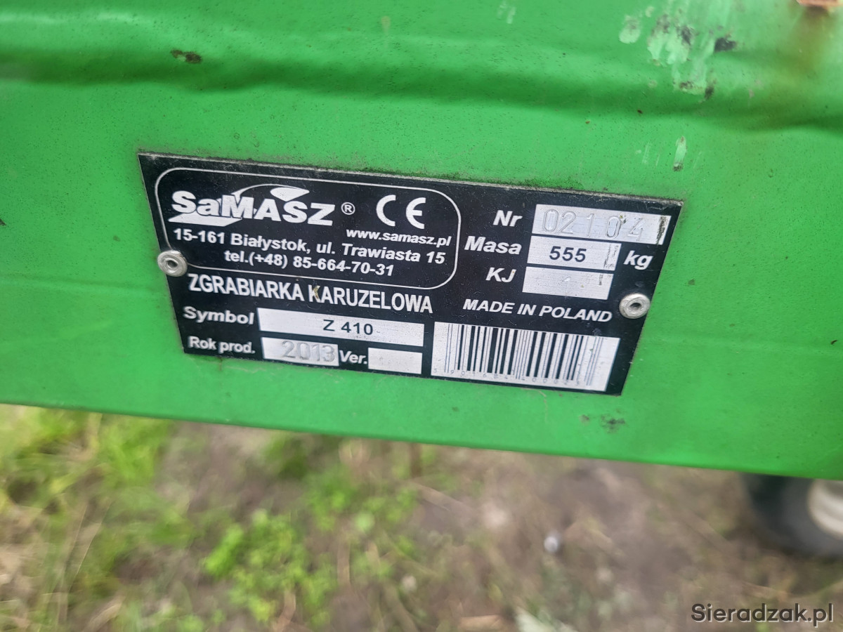 Sprzedam zgrabiarke samasa z 410. Rok 2013. Szerokość 4.10 m. Stan bardzo dobry.