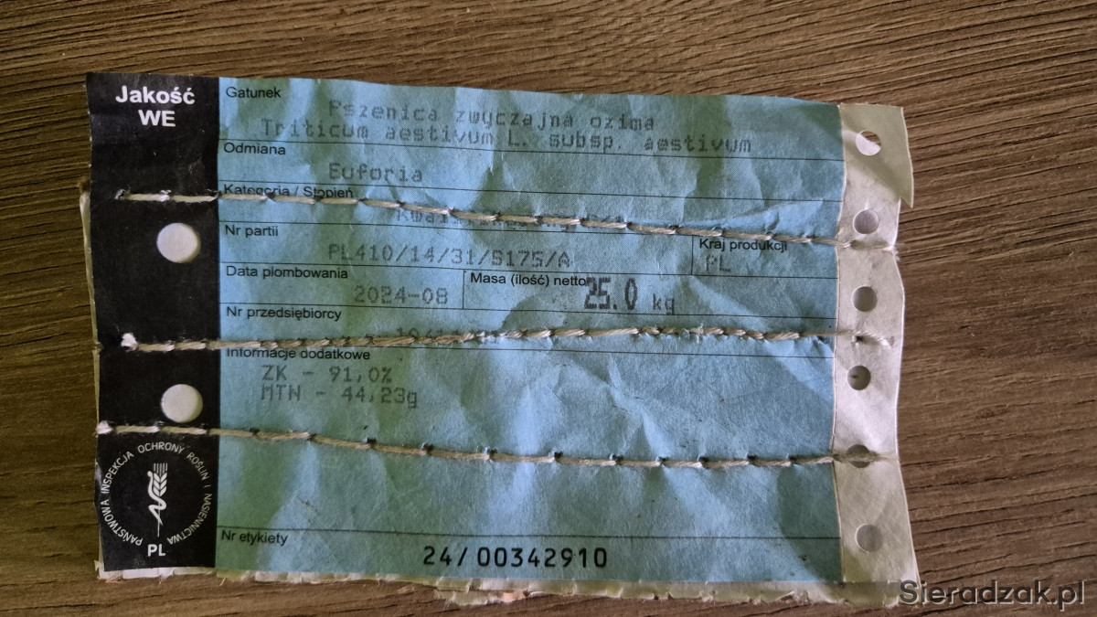 Sprzedam pszenicę odmiana Euforia. Tegoroczna, pierwszy siew po centrali.
