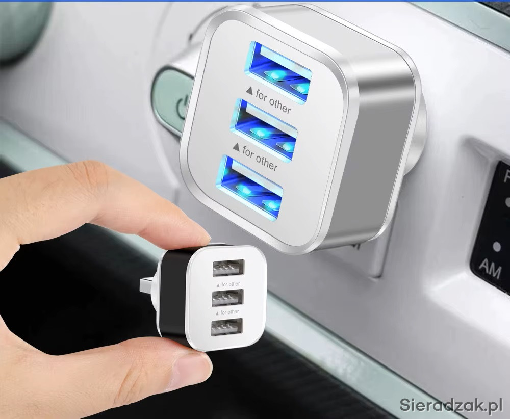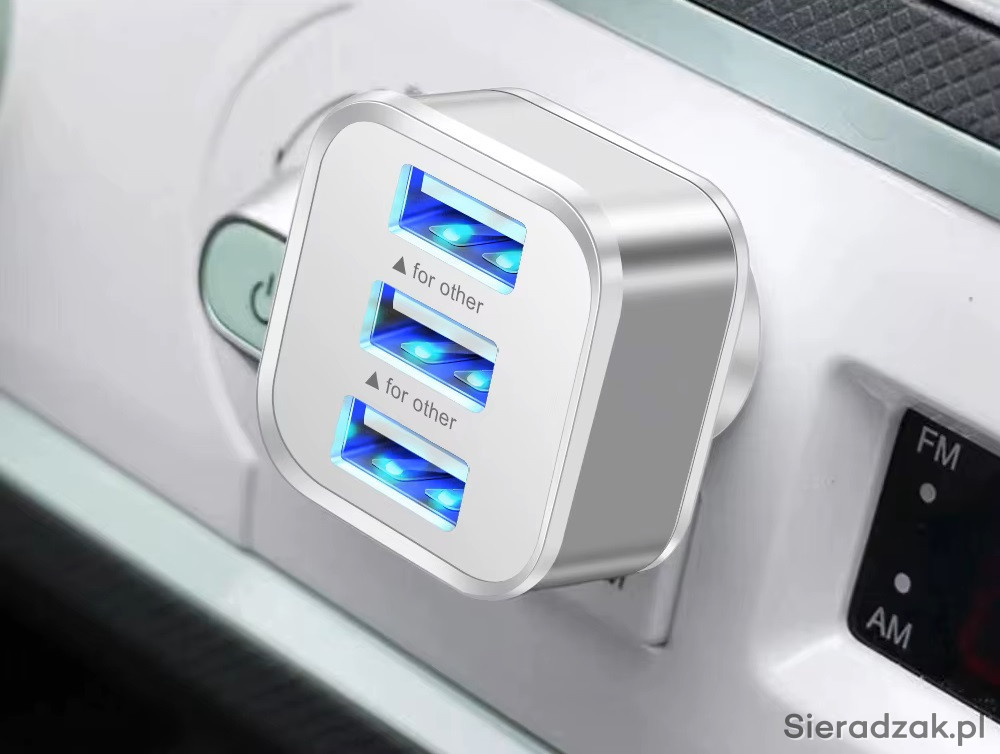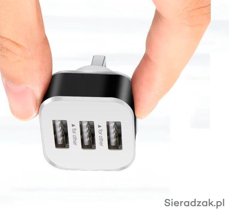 Adapter - rozgałęźnik na 3 porty USB jest przeznaczony do jednoczesnego ładowania trzech dowolnych urządzeń. Nie posiada funkcji przesyłania danych.