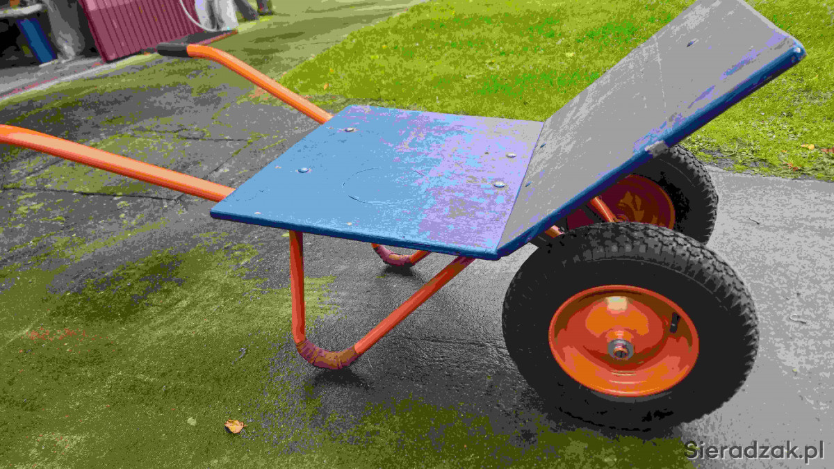 Sprzedam taczkę 2 królową widoczną na zdjęciach. Taczka nowa, oryginalna użyta z 5 razy. Taczka z koszem a także z platformą. Ładowność do 200 kg. Taczka ma wzmacnianą oś i rurki i jezdne ,którymi się pcha taczkę .