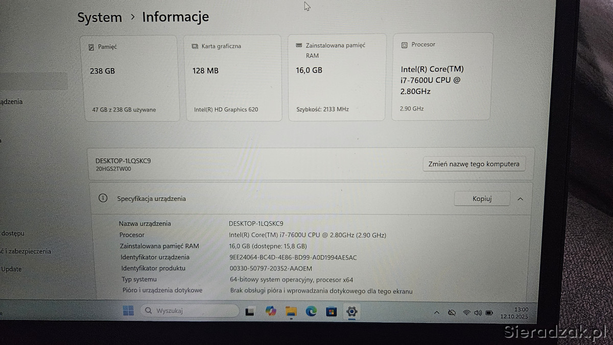 Nie tego szukasz? Przejrzyj inne oferty z tej kategorii (Telefony i Komputery › Laptopy i podzespoły). Możesz też zawsze przejść na stronę główną lub skorzystać z wyszukiwarki. ⊗