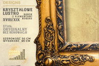Rama: Lustro oprawione jest w ozdobną ramę drewnianą. Rama jest bogato zdobiona rzeźbieniami.
