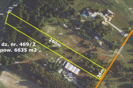 Działka w o wymiarach szerokość ok. 26 m. długość ok. 260 m.
