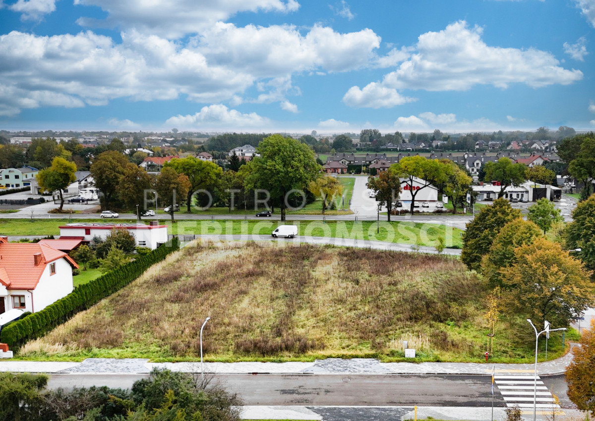 To narożna, doskonale wyeksponowana działka inwestycyjna w jednym z najbardziej rozpoznawalnych punktów Sieradza — między dwoma rondami, przy wylotowej trasie na S8.